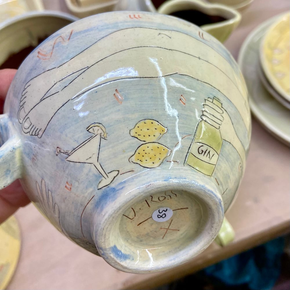Earthenware clay decorated with coloured slips, brushwork and sgraffito
